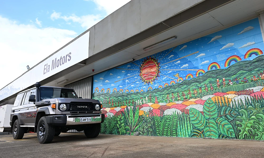 At the request of Ela Motors PNG, a subsidiary of the Toyota Tsusho Group, we created murals in Rabaul, Goroka, and Port Moresby to commemorate the 50th anniversary of Papua New Guinea’s independence. Each mural was created together with local communities and reflects the character of its region.
