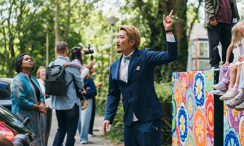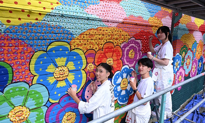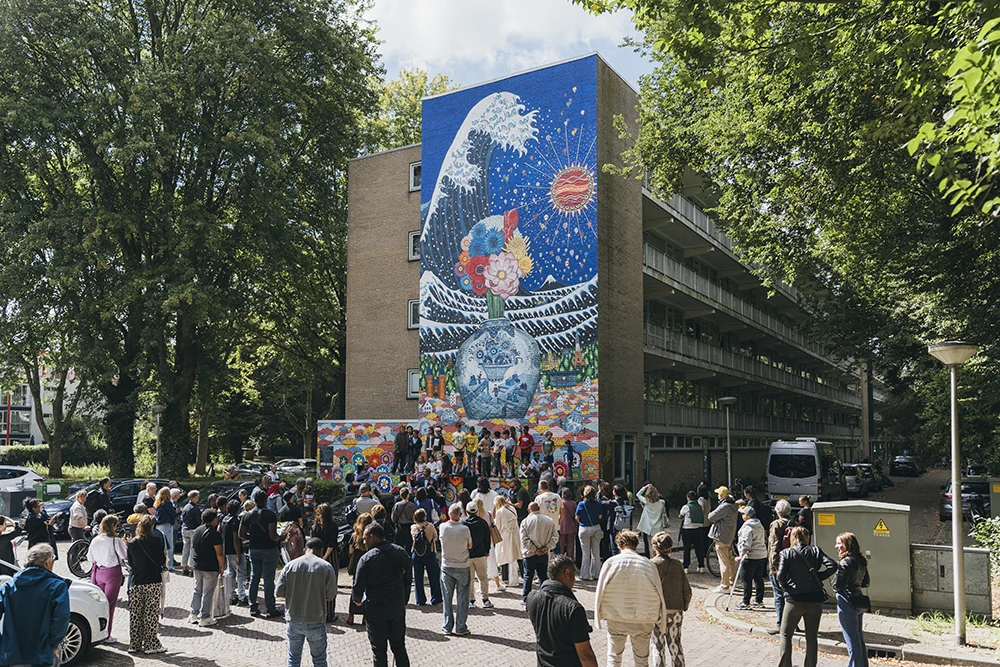 With the cooperation of the Prinsenhof Museum in Delft, we created a mural on the wall of a residential complex in the city. As a joint project with Saga Prefecture, three high school students from the prefecture were dispatched to the site, and the activity was carried out as part of the 450th anniversary of Japan–Netherlands friendship.